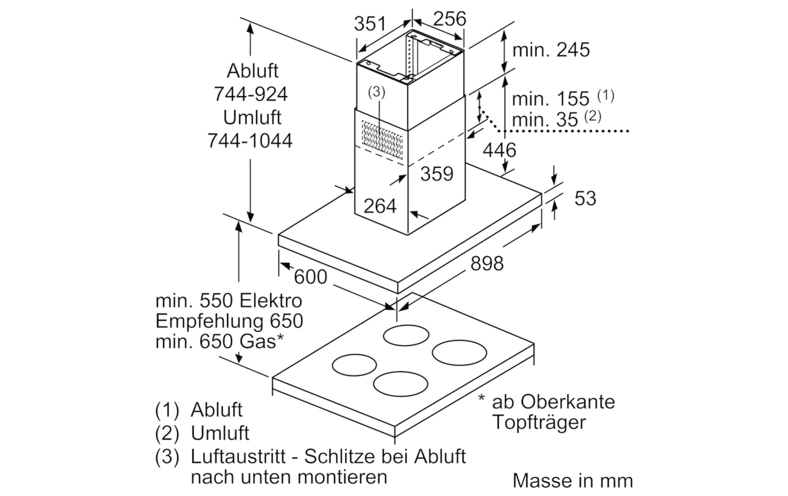- Modellart Dunstabzugshaube: Inselhaube